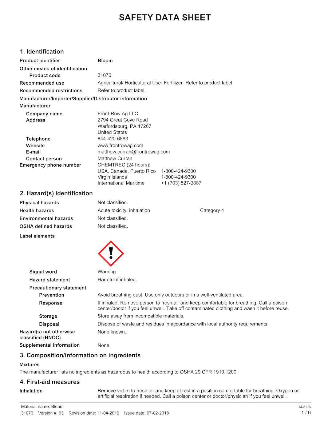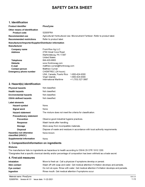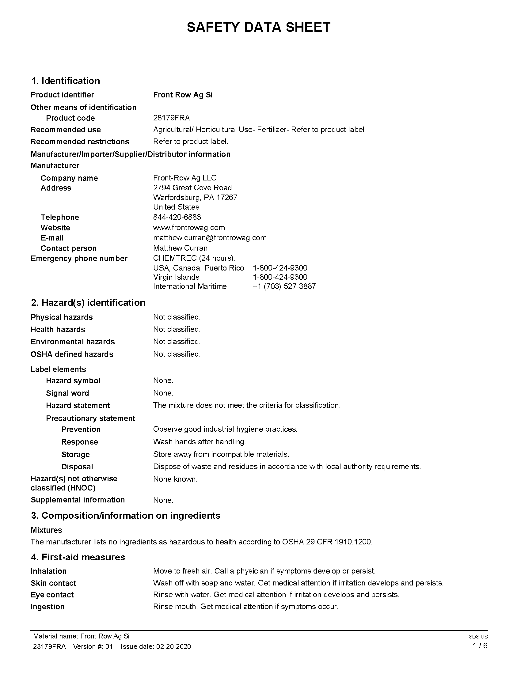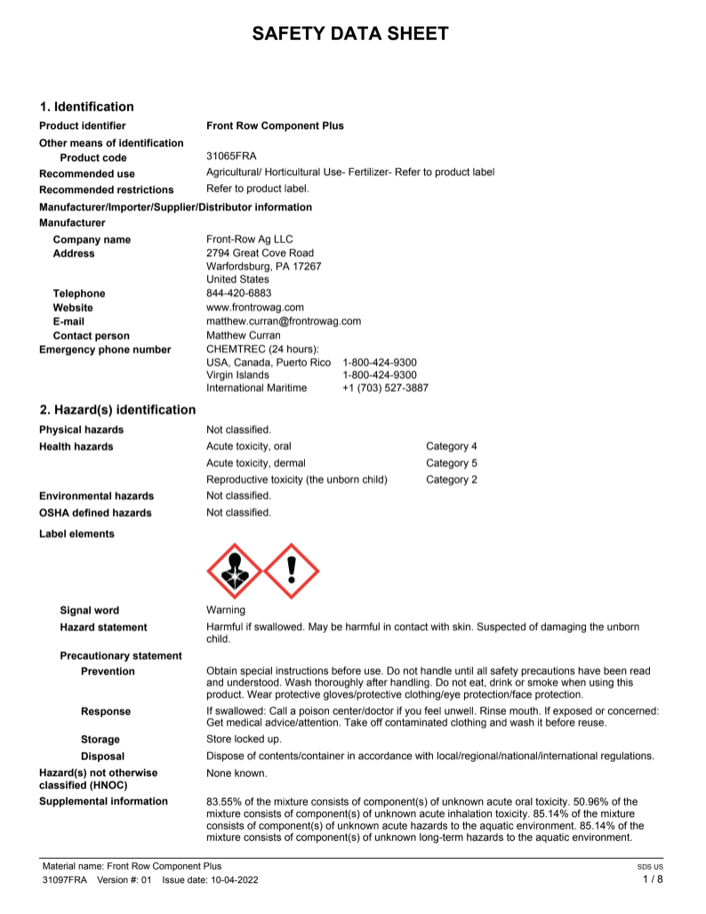 Front-Row Ag uses the highest purity and grade agricultural inputs.