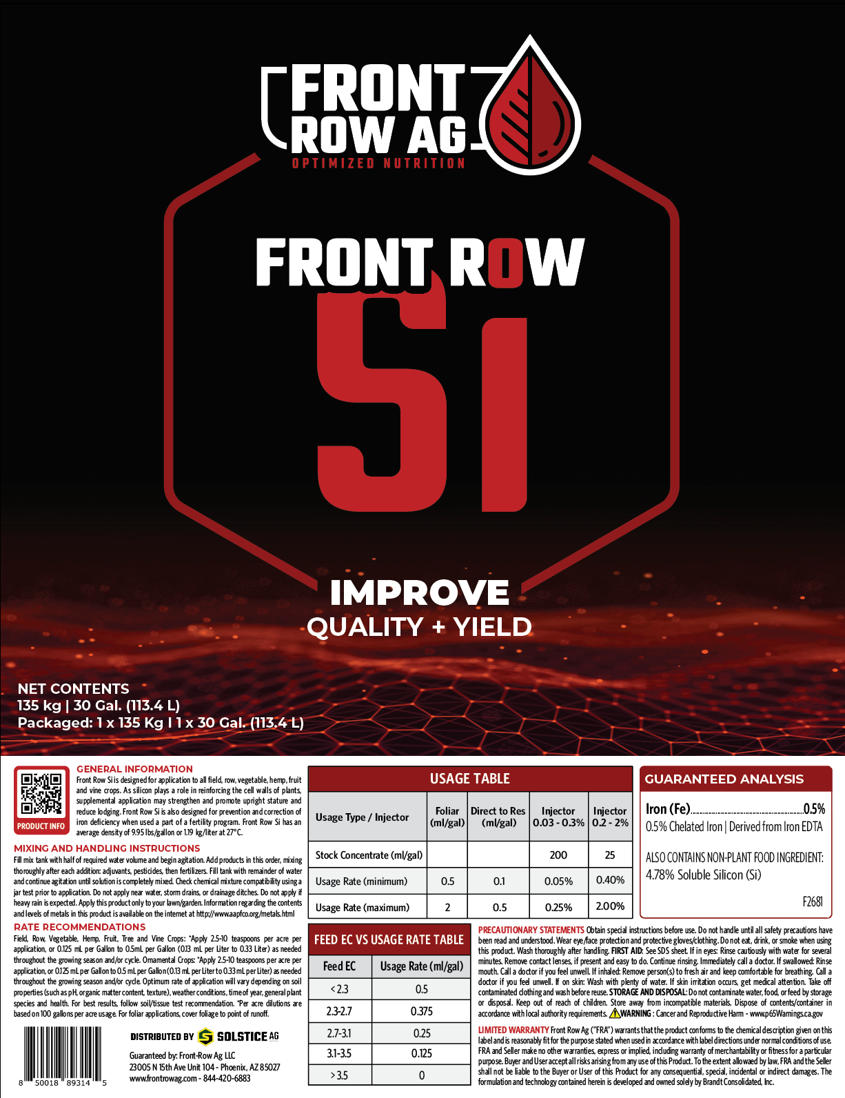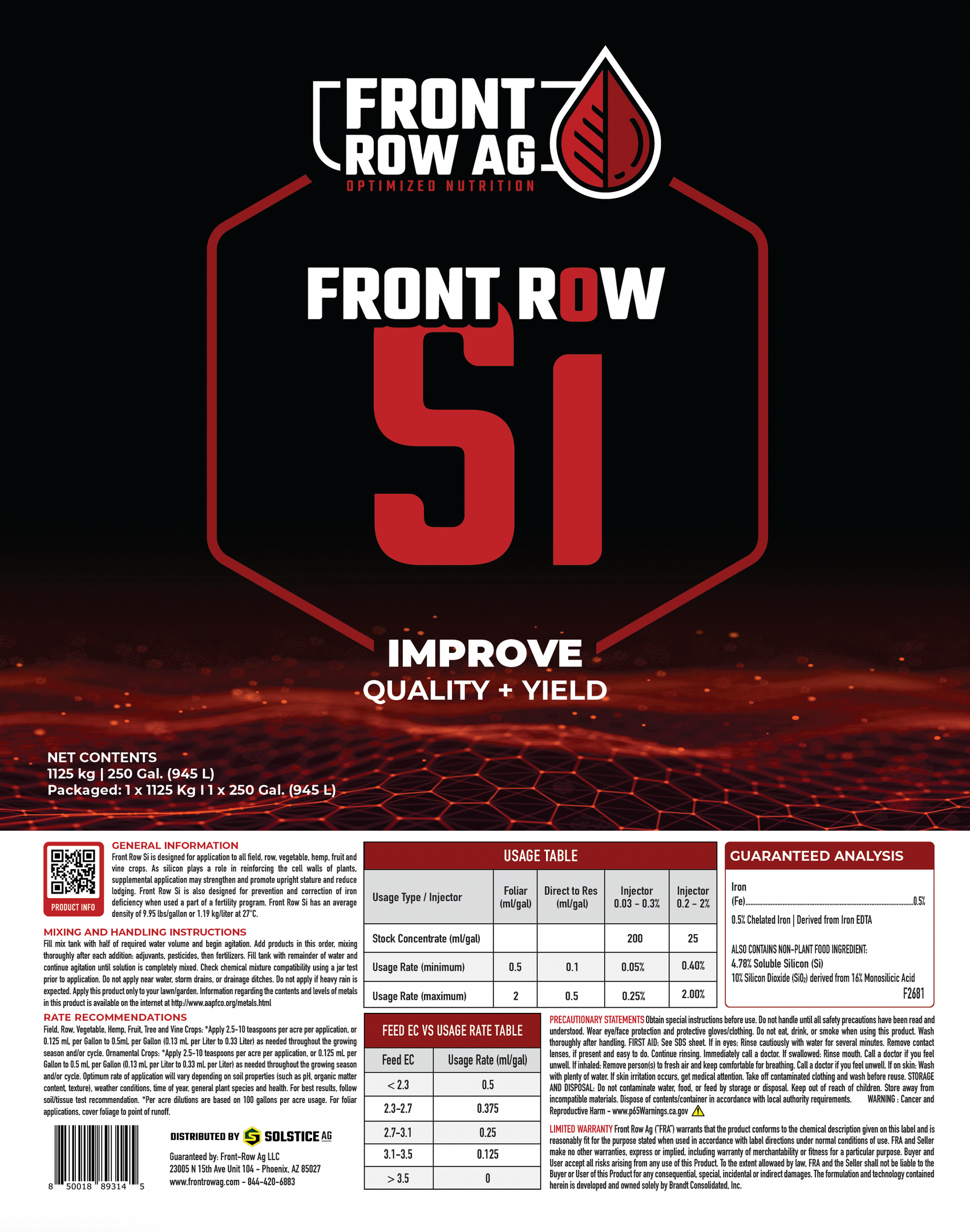 It is also more cost effective (less expensive). Front Row Si also has a built in surfactant and can be used as a foliar feed at 0.5ML/gallon.