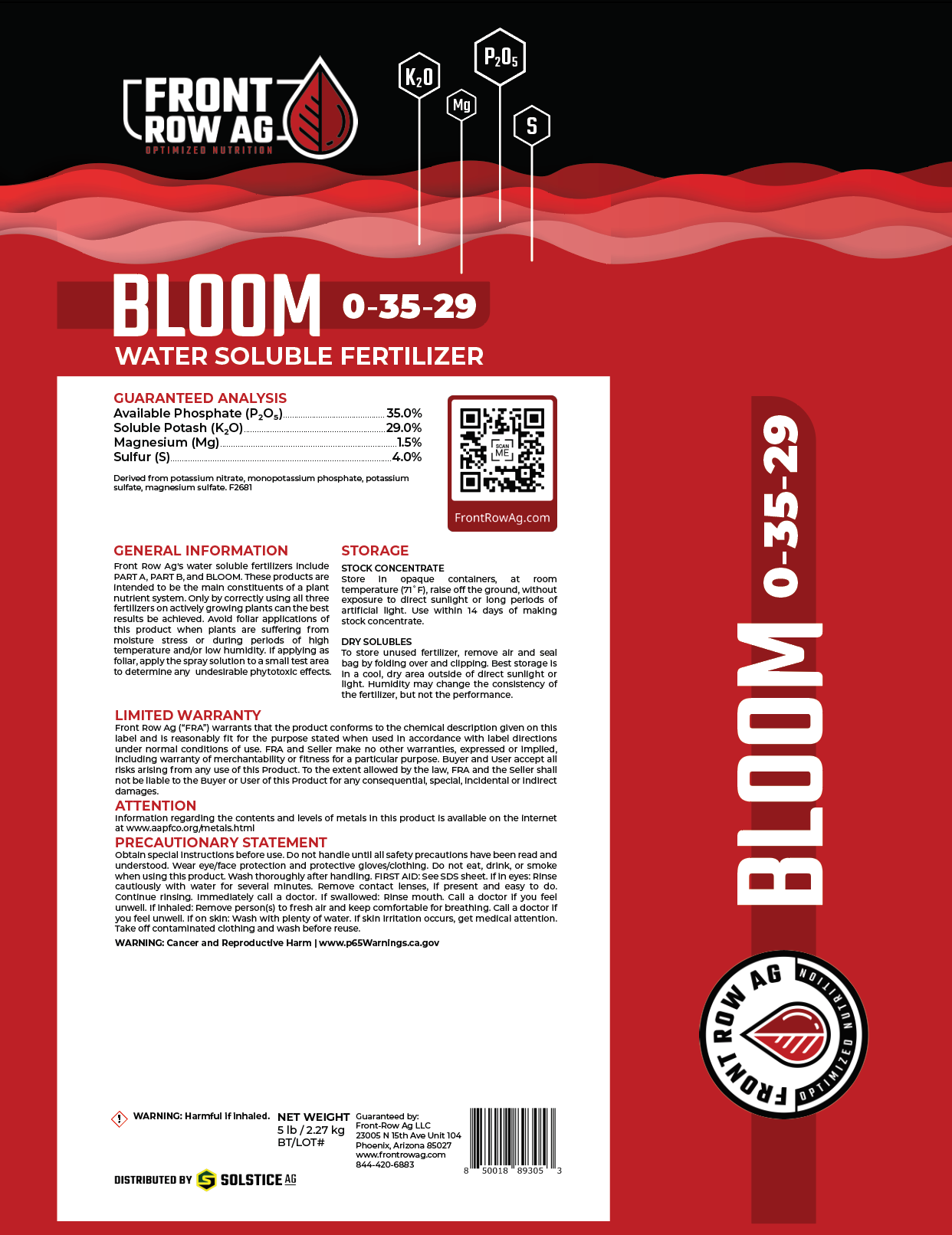 No. You will not need an additional bloom booster when using Front Row Ag Bloom. This contains all the needed micronutrients, plus ideal quantities of P-K, to allow you to maximize density, quantity, and quality.
