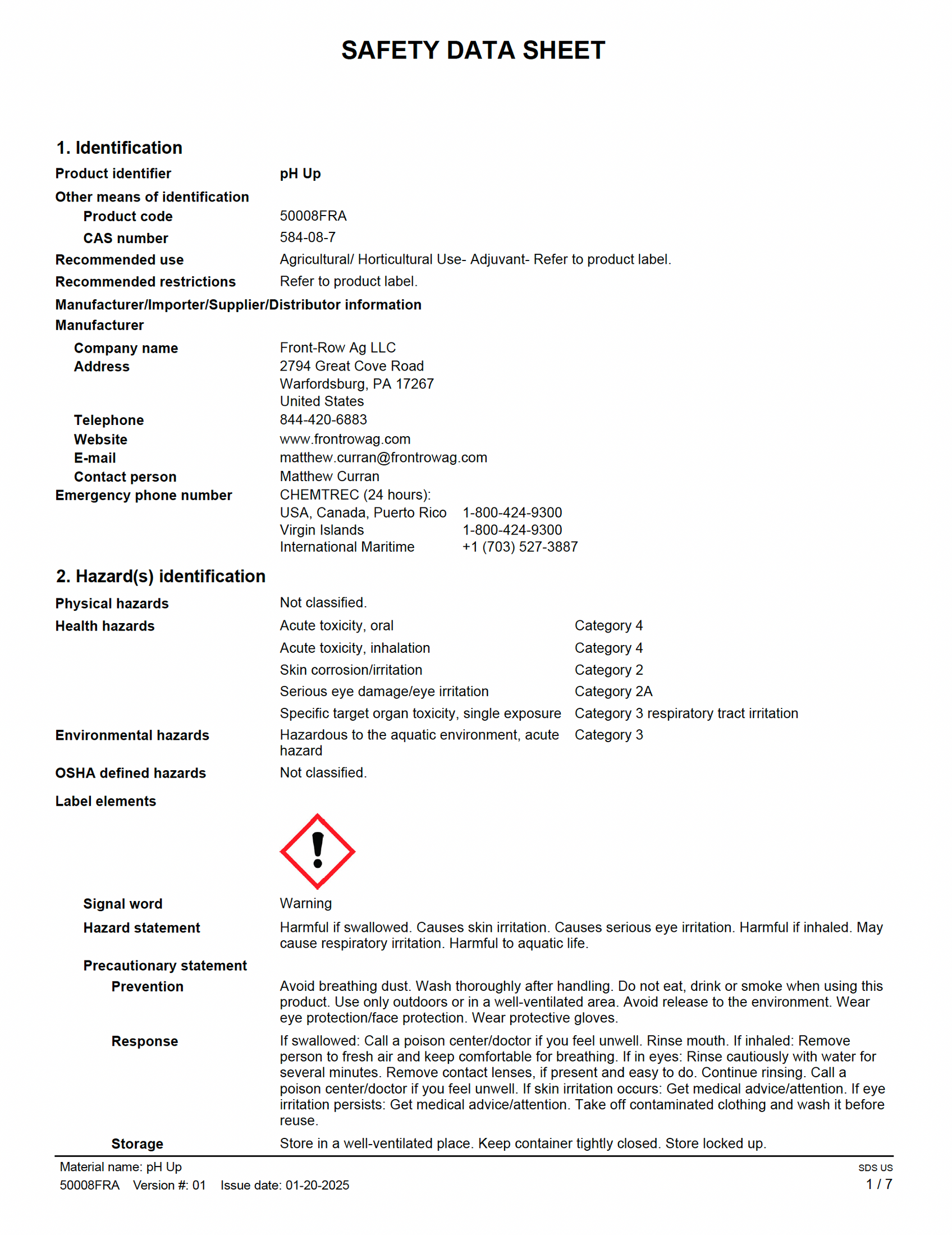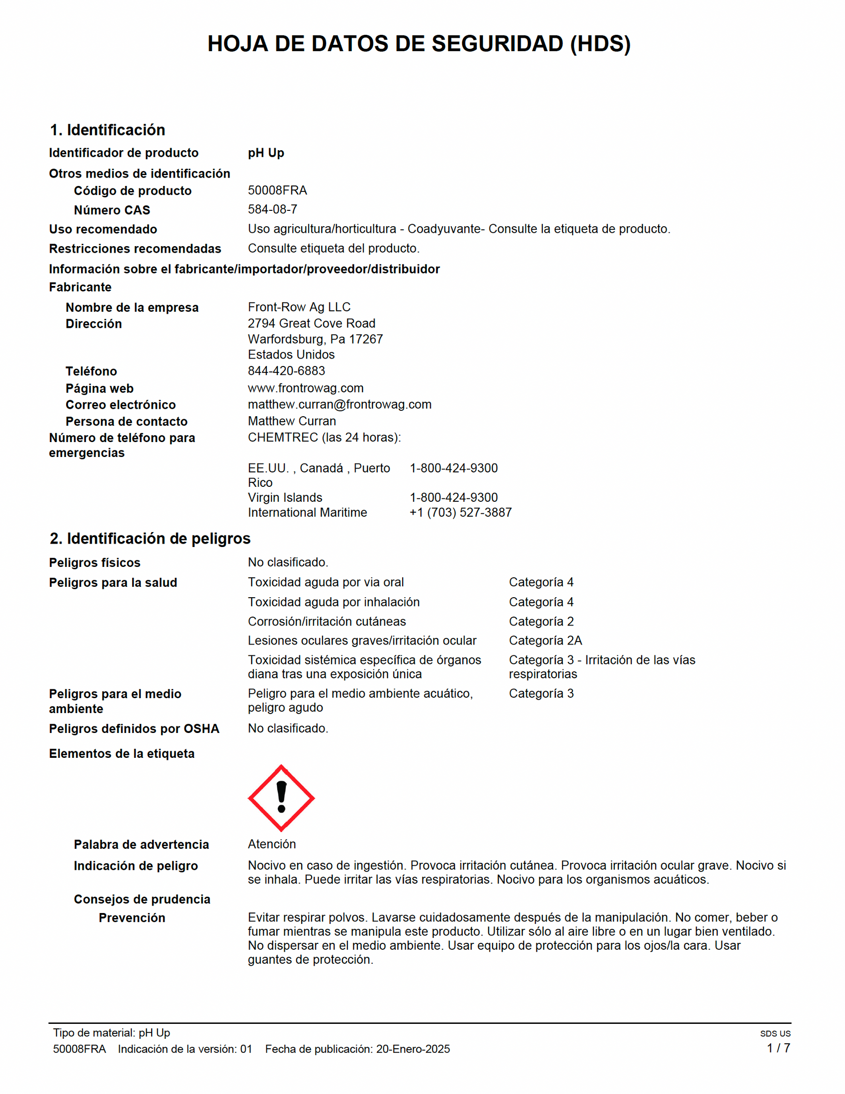 Front Row Si สามารถใช้ได้ที่ 1/2 มล. ต่อแกลลอน